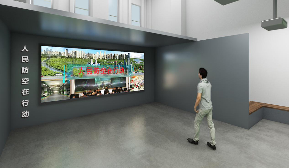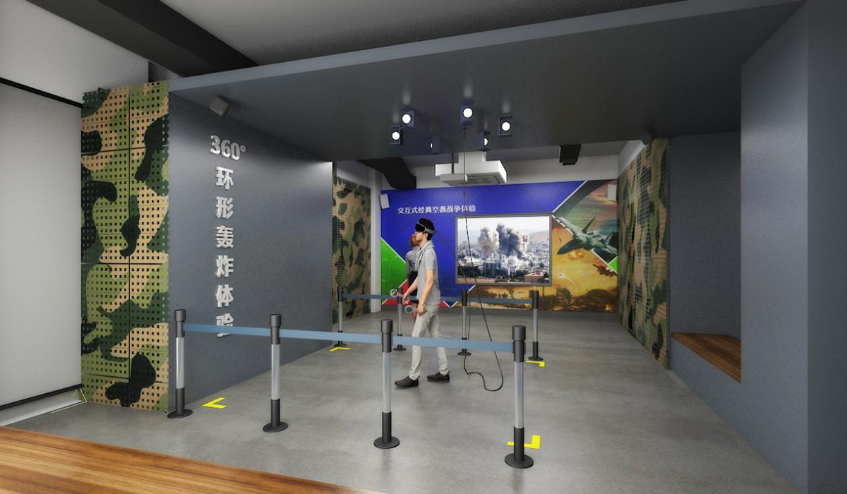 本期工程包含: 360度环形全景轰炸体验、交互式经典空袭战争体验、防空导弹武器平台体验、前沿武器数据库、空袭来临体验、人民防空在行动六个VR多媒体互动展项的设计、制作和安装调试;逃生技能训练、团队建设训练两个户外拓展项目的设计、制作和安装部署等内容。